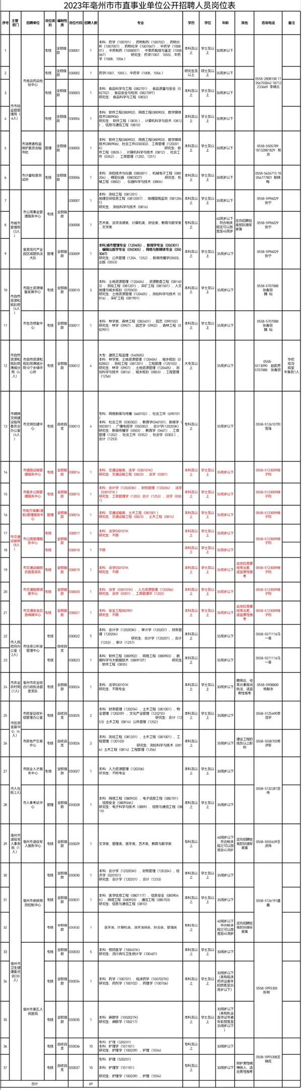 亳州市市直事业单位